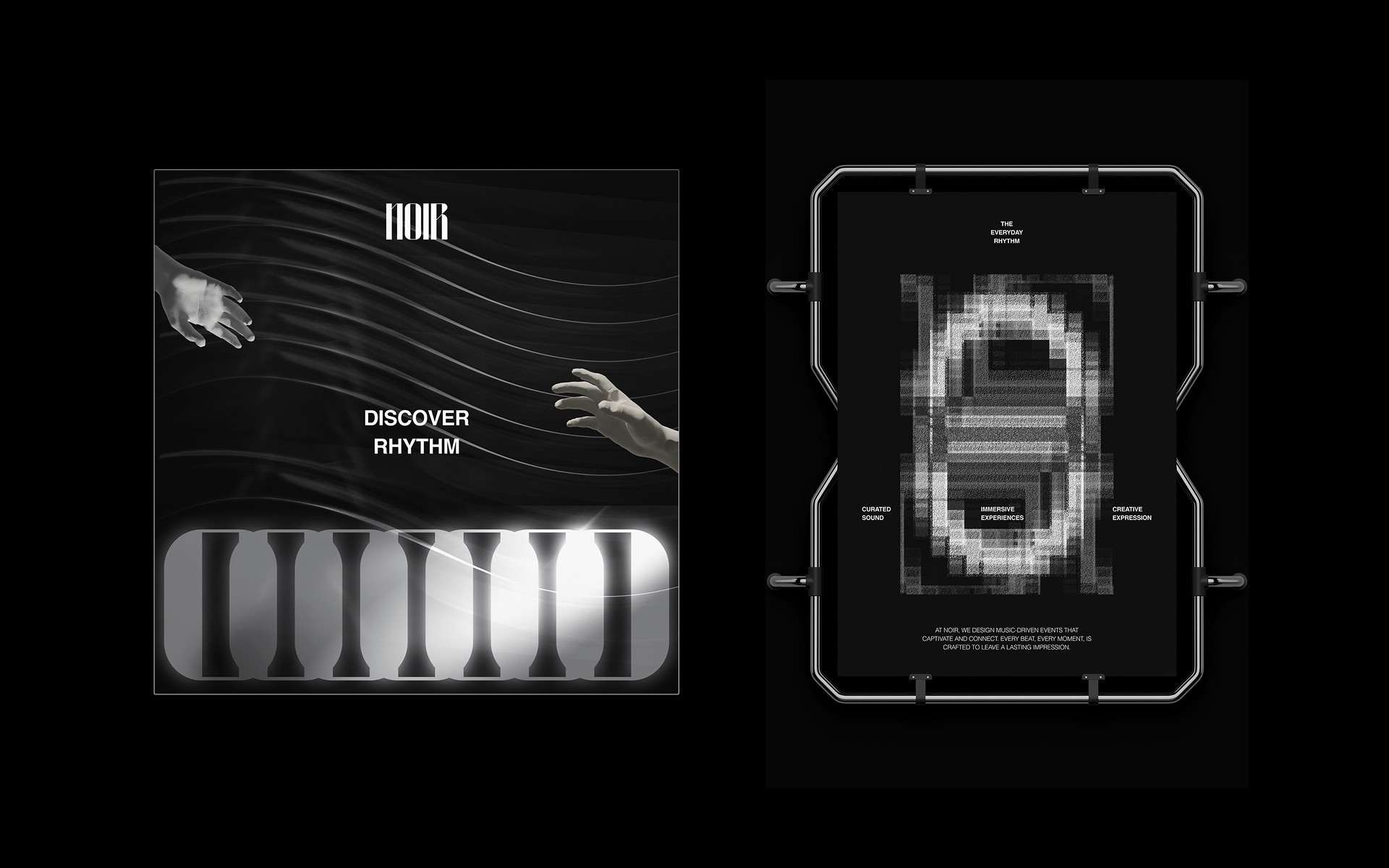 Noir is a music event agency dedicated to crafting unforgettable experiences. This branding and identity concept is developed entirely in grayscale, reflecting the brand’s moody, minimal aesthetic and its focus on atmosphere-driven music experiences.