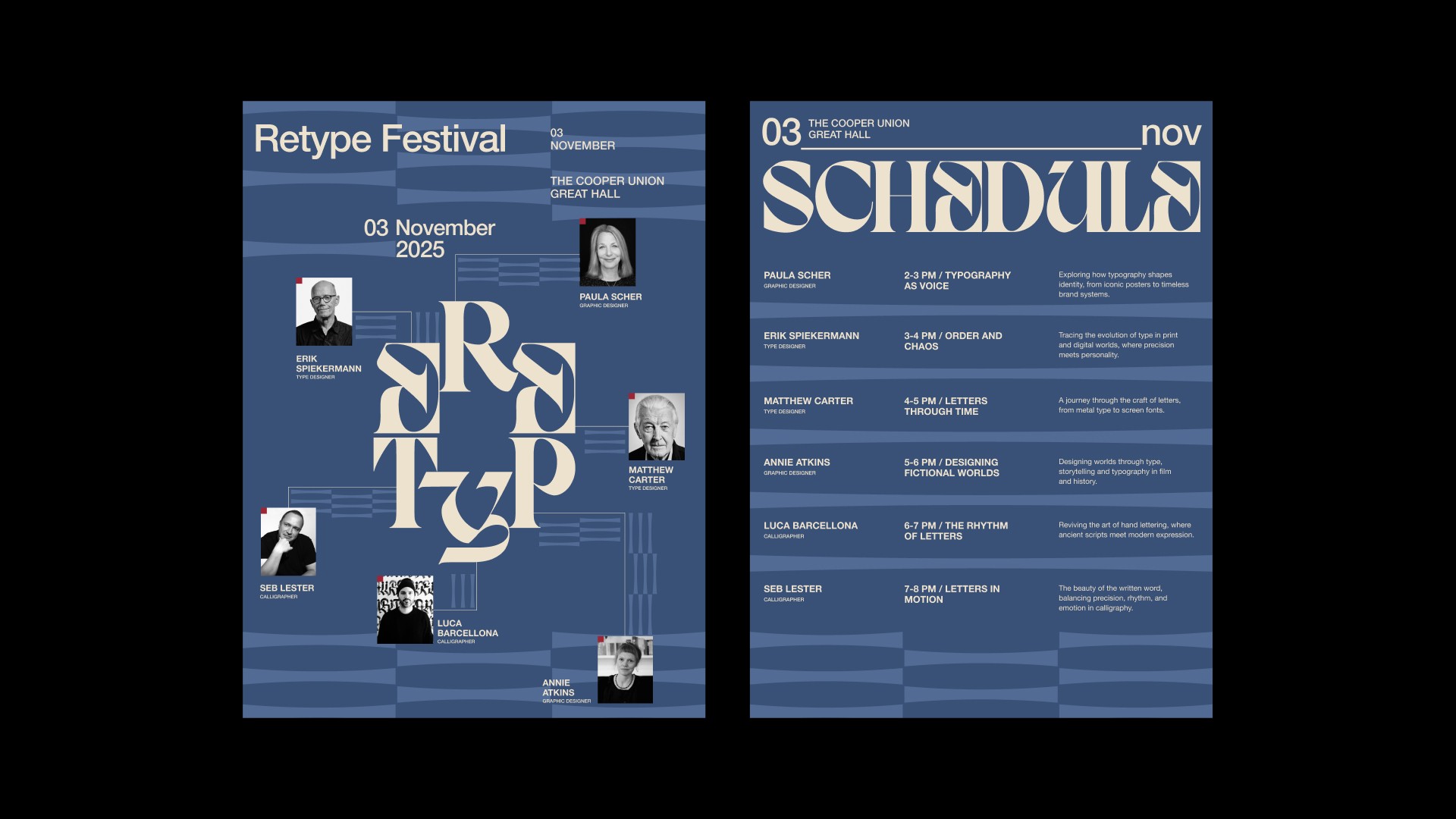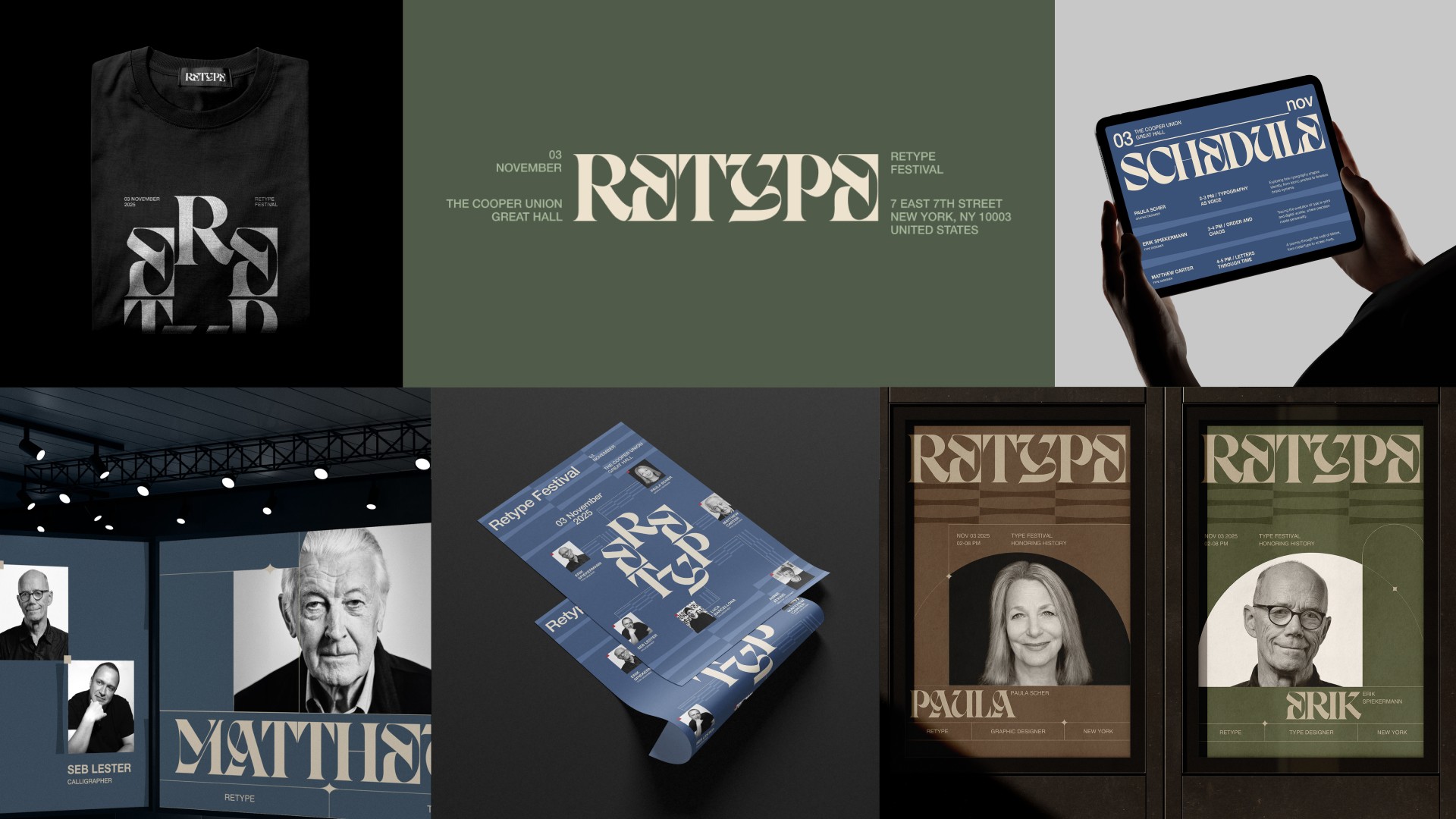 A conceptual festival that honors the rich legacy of historical letterforms is the foundation of the branding initiative Retype Conference. In order to build a meaningful link between the past and the present, the identity investigates how conventional letter-making techniques can be reinterpreted within modern design. Along with a carefully chosen lineup of designers working in comparable typographic and craft-driven spaces, the project also features the festival's complete visual identity.